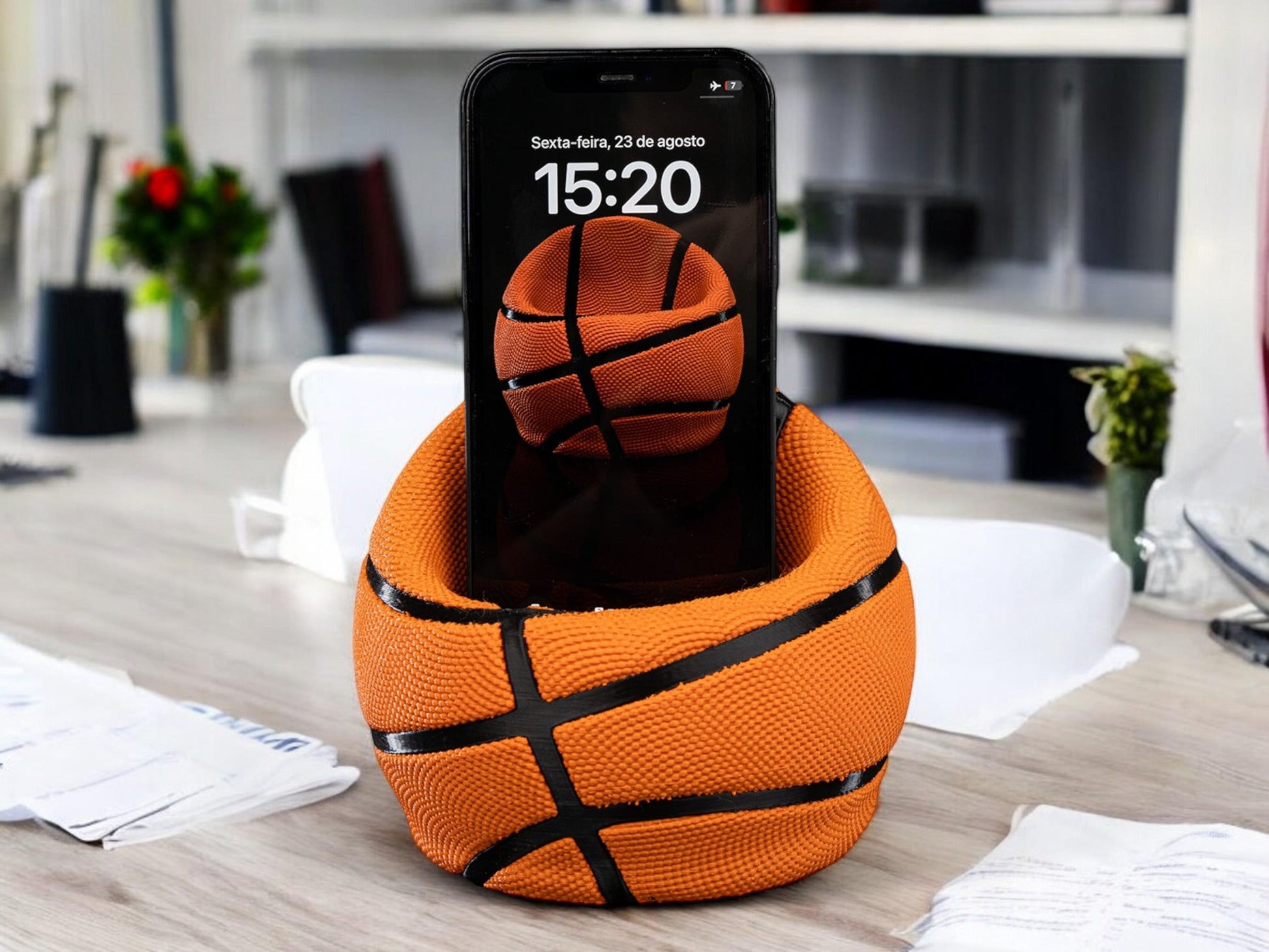 Basketball Phone Holder Stand | Adjustable Desk Mount for Smartphones, Perfect Gift for Sports Fans & Enthusiasts