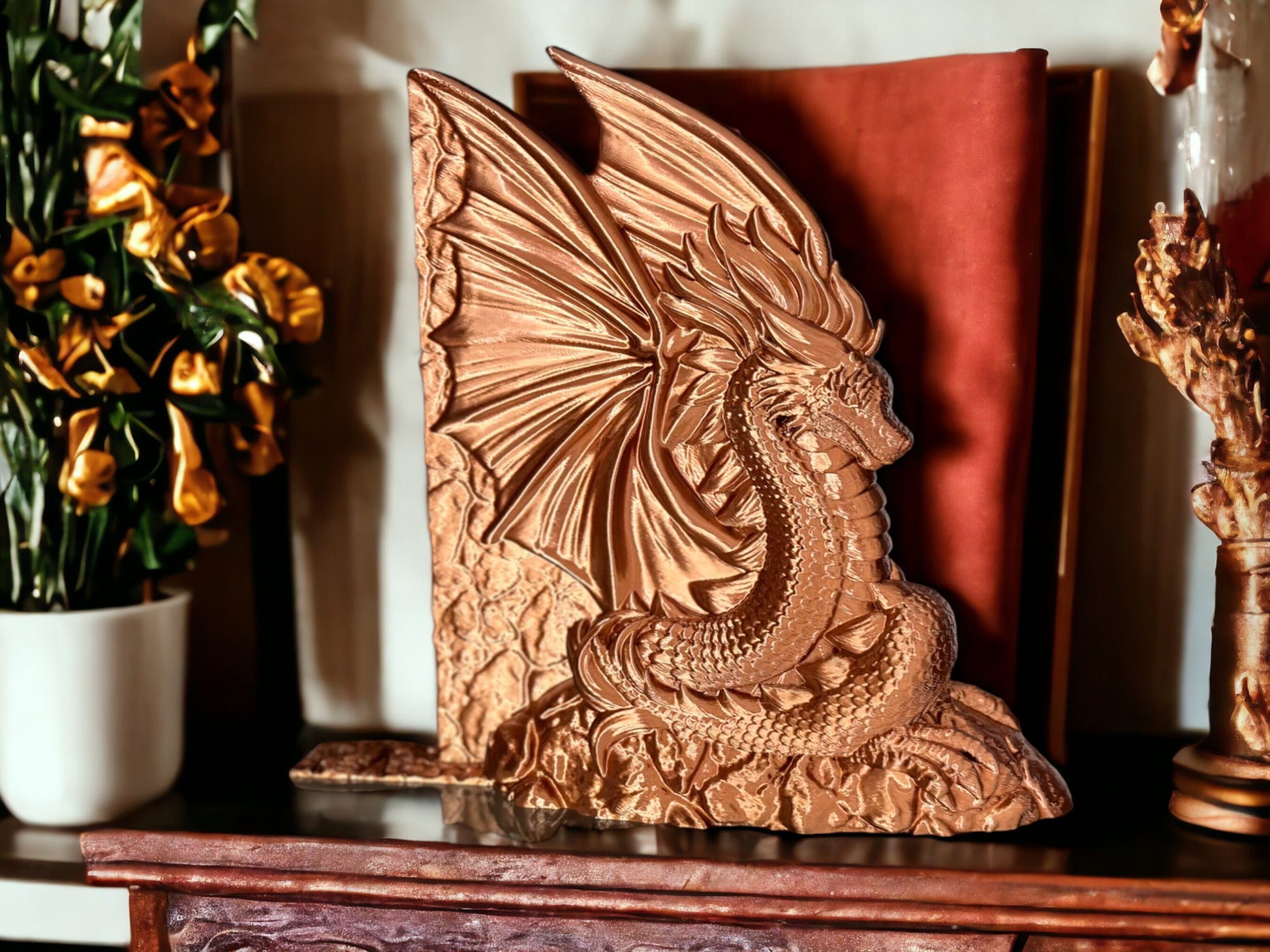 This Dragon Book End Nook is perfect for fantasy enthusiasts, book lovers, home décor aficionados, and more. With its intricate design and precise 3D printing, this dragon book end is sure to impress.