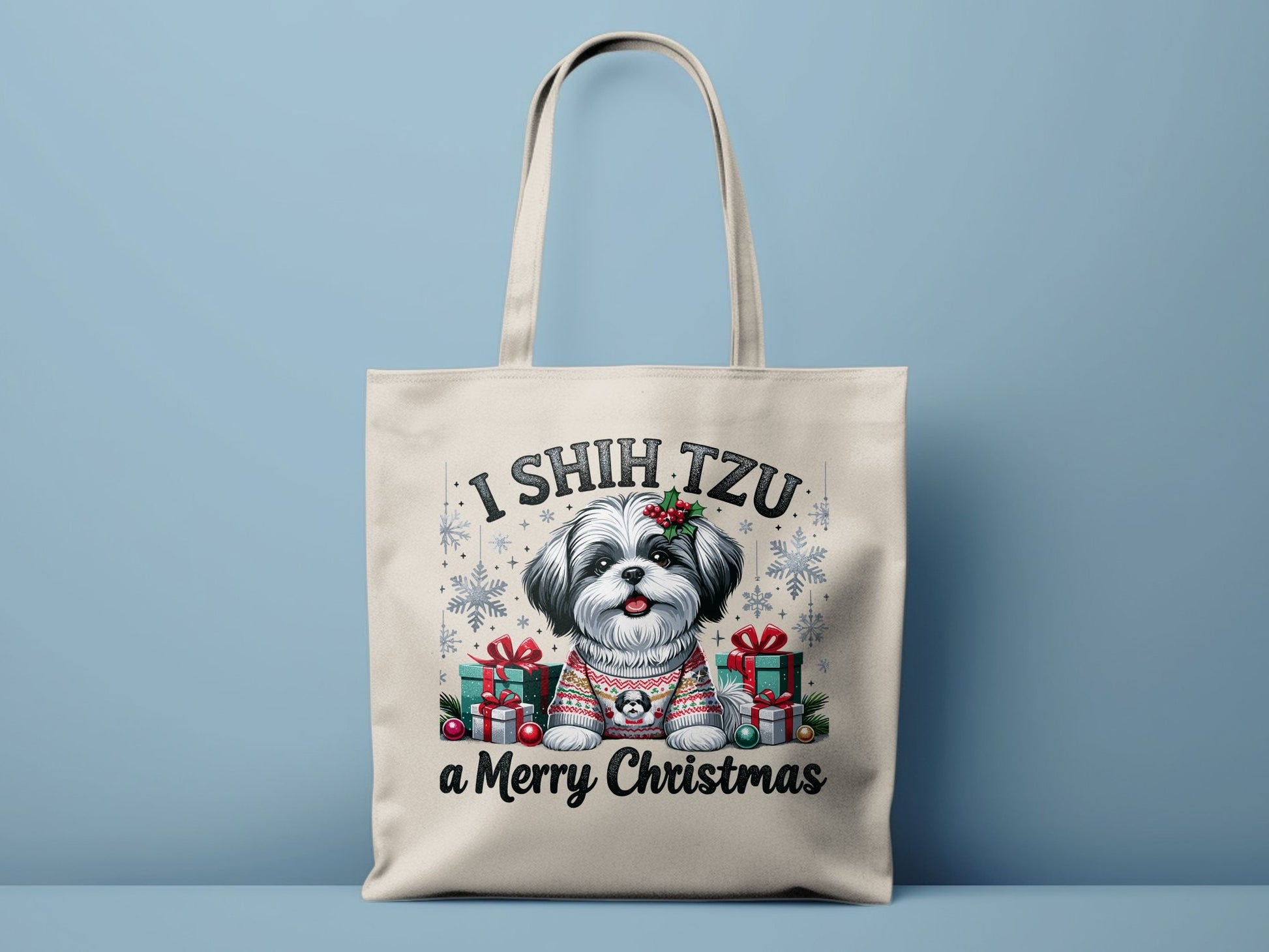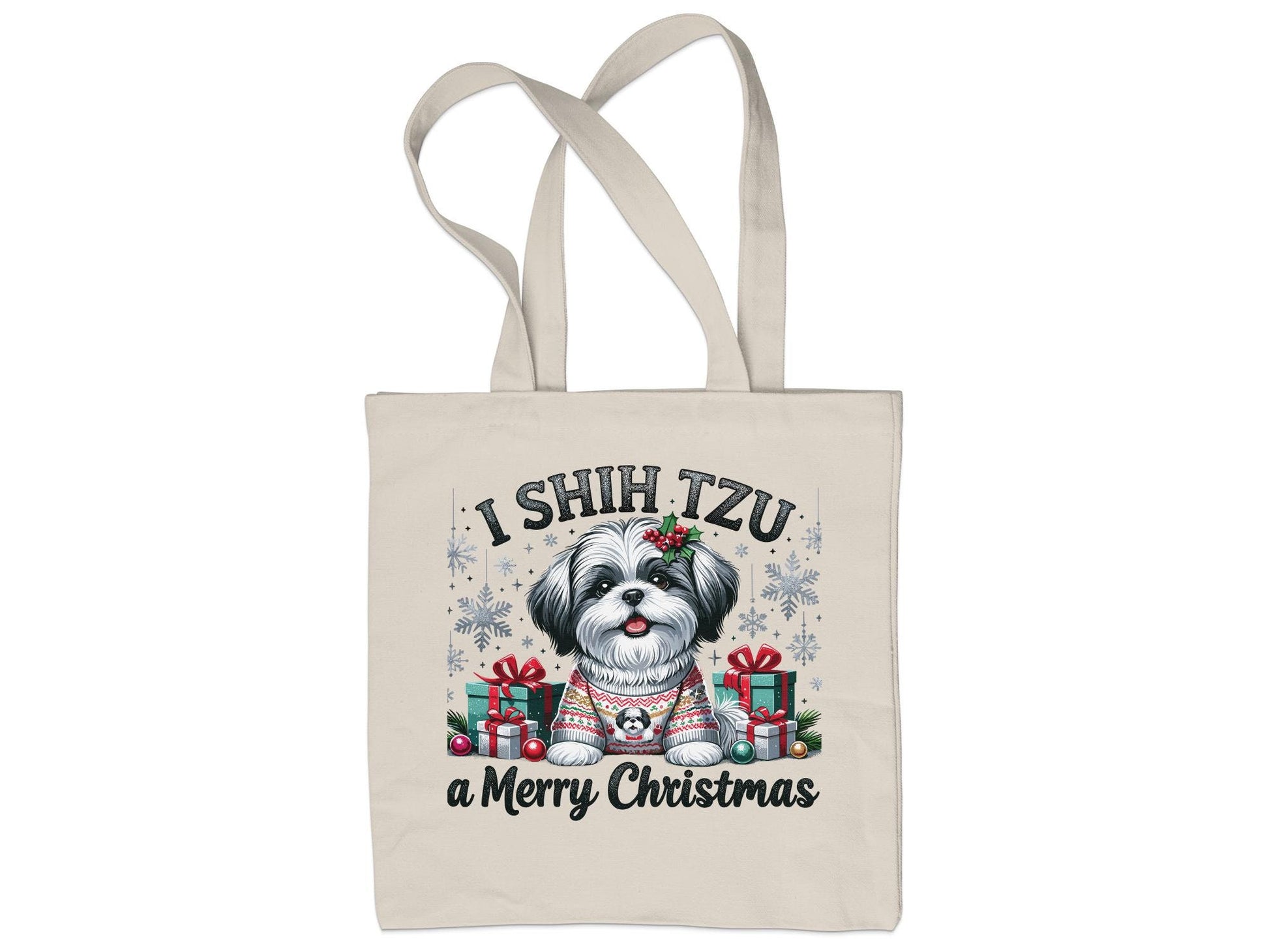 🎄 Festive Shih Tzu Design: Embrace the holiday season with a Shih Tzu twist! This tote bag features a Shih Tzu adorned with Christmas accessories, making it a perfect holiday companion.