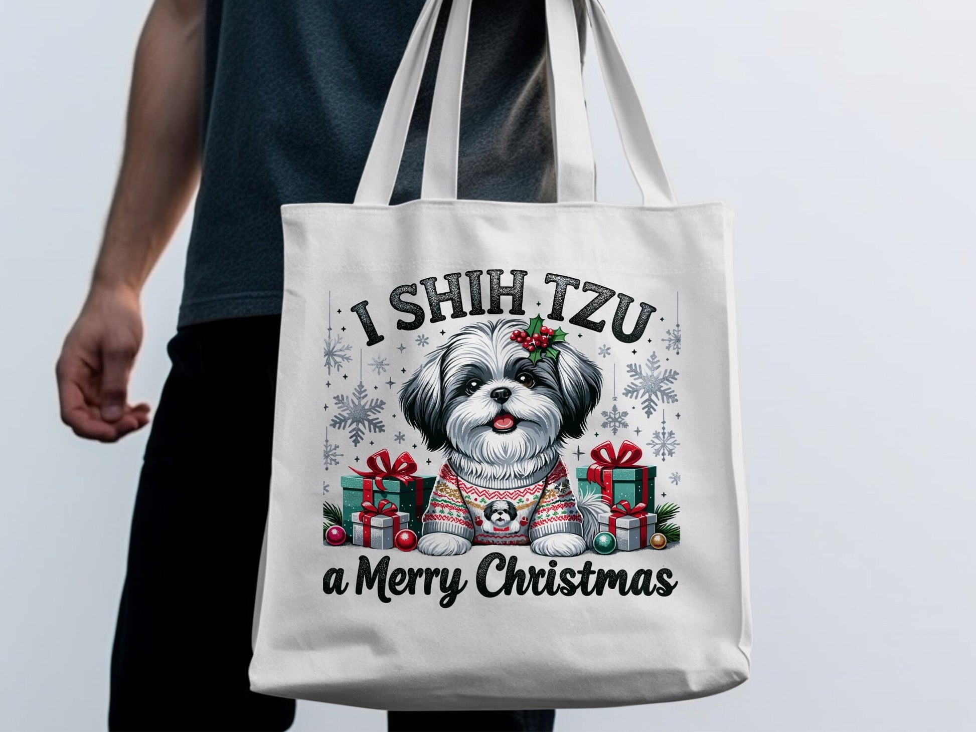 Get ready to add a dose of festive charm to your holiday shopping or everyday errands with our I Shih Tzu a Merry Christmas Tote Bag. This adorable tote isn't just a practical accessory; it's a declaration of love for your Shih Tzu and a delightful conversation starter.
